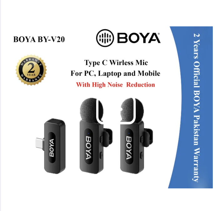 3 Years Warranty – BOYA BY-V20 Wireless Microphone System with USB Type-C Connector for Mobile Devices (2.4 GHz) Plug Play Lapel Clip-on Mic, Cordless Omnidirectional Mini Condenser Mic for Interview Video Podcast Vlog Recording